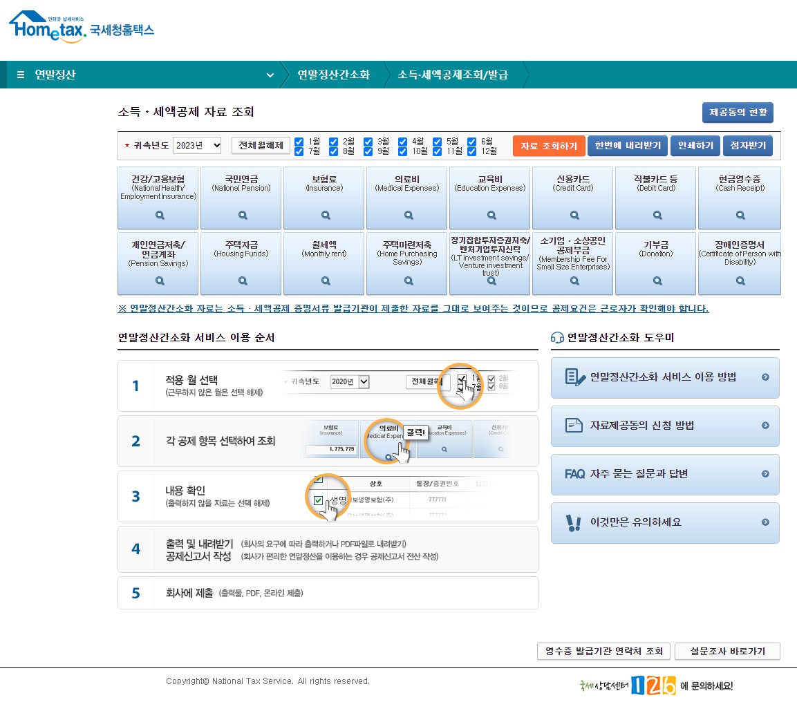 15일부터 연말정산 간소화 서비스가 개통되었습니다.